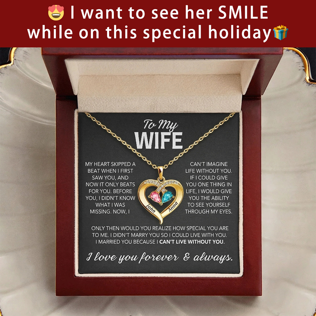 • 1*For Wife - My Heart Only Beats For You Customized Double Birthstones & Names Necklace