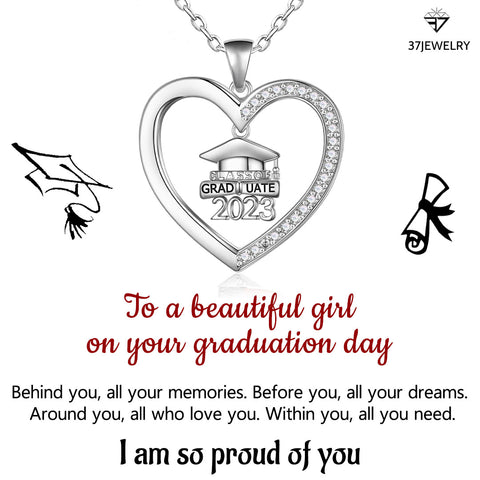 S925 Around You All Who Love You Half Diamond Bachelor Hat Heart Necklace