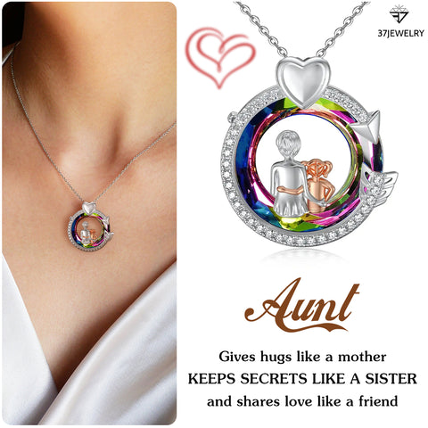 For Aunt - S925 Gives Hugs Like A Mother Keeps Secrets Like A Sister Circle Crystal Necklace