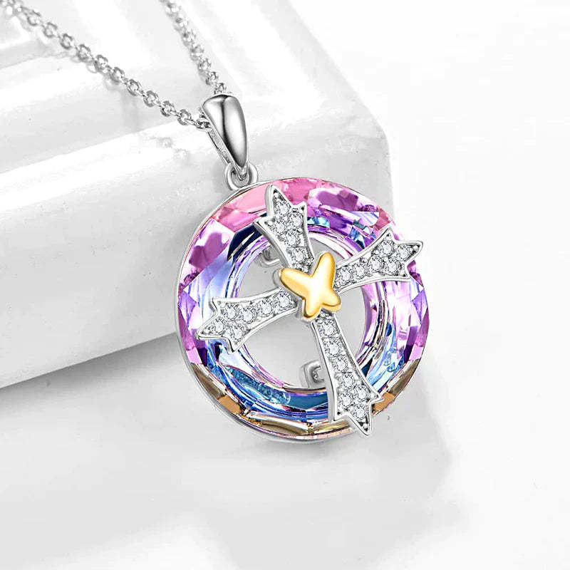 For Daughter - S925 Pray Crystal Love Cross Necklace