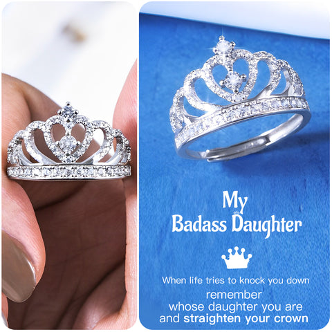 For Daughter - S925 When Life Tries to Knock You Down Remember Whose Daughter You are Crown Ring