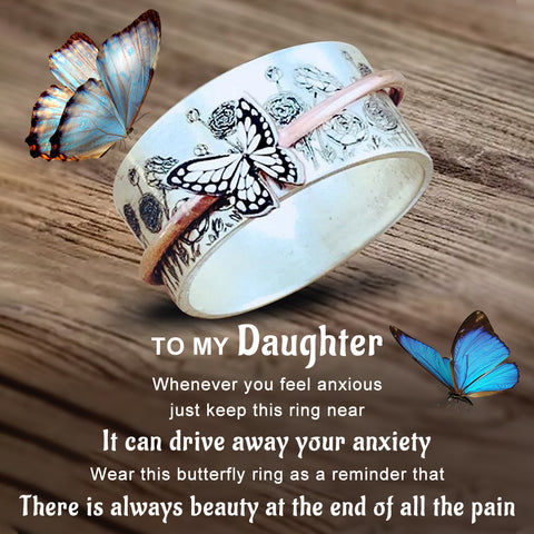 For Daughter - S925 There is Always Beauty at The End of All The Pain Butterfly Spinner Ring