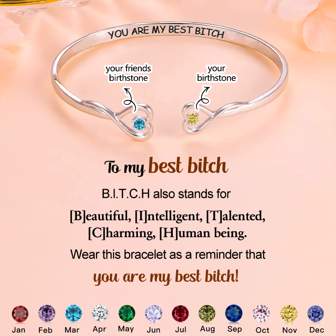For Friend- You're My Best Bitch Double Hearts Custom Birthstones Bracelet