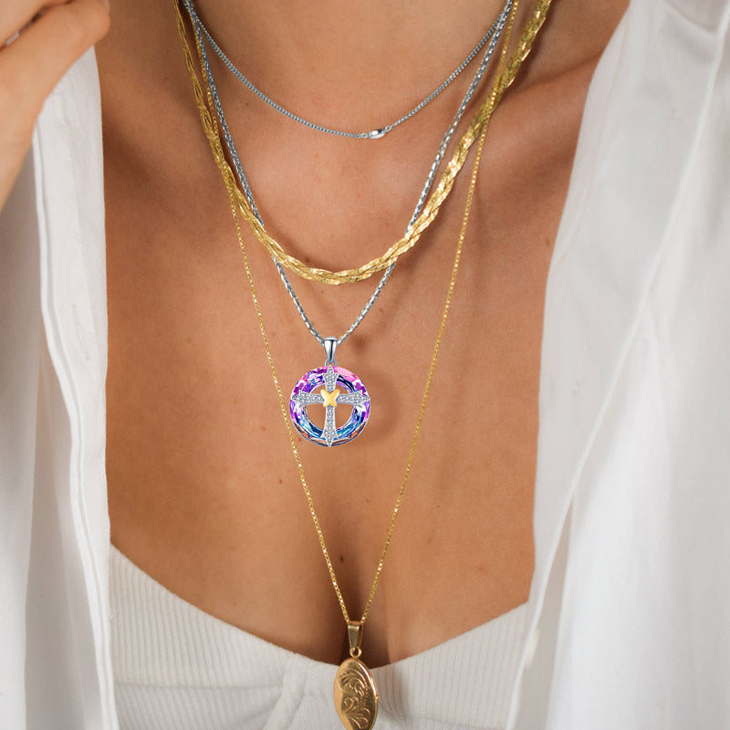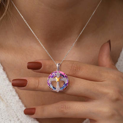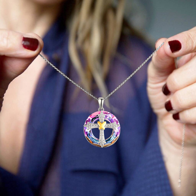 For Friend - S925 Our Friendship is a True Blessing to Me Crystal Love Cross Necklace