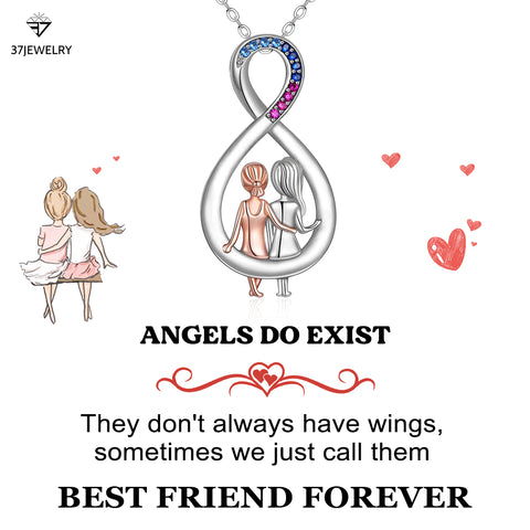 For Friend - S925 Sometimes We Just Call Angels Best Friend Forever Colourful Silver Pendant Necklace