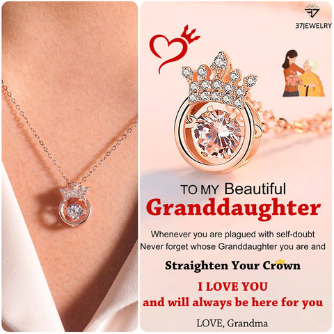 For Granddaughter - S925 I Love You and Will Always be Here for You Crown Necklace
