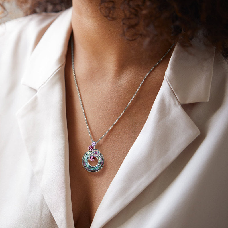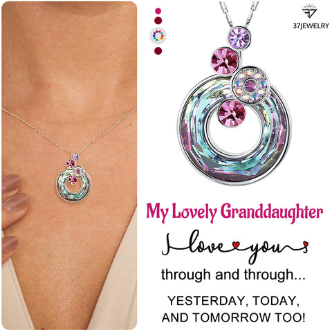 For Granddaughter - S925 I Love You Through and Through Crystal Bubble Round Necklace