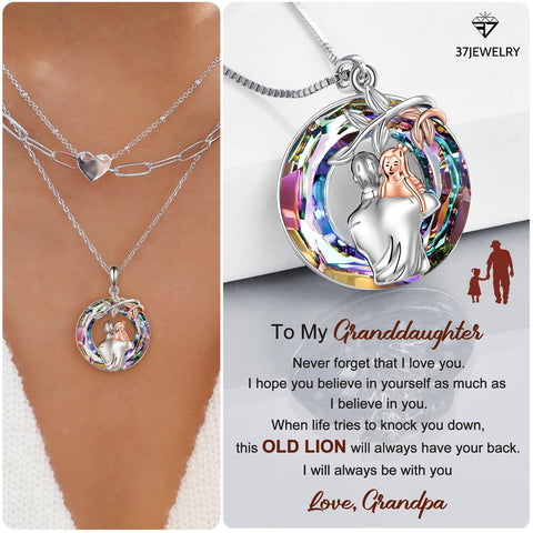 For Granddaughter - S925 When Life Tries to Knock You Down This Old Lion will always Have Your Back Crystal Necklace