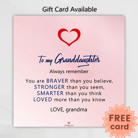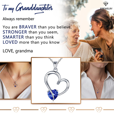 For Granddaughter - S925 You are Braver than You Believe Stronger than You Seem Blue Crystal Heart Necklace
