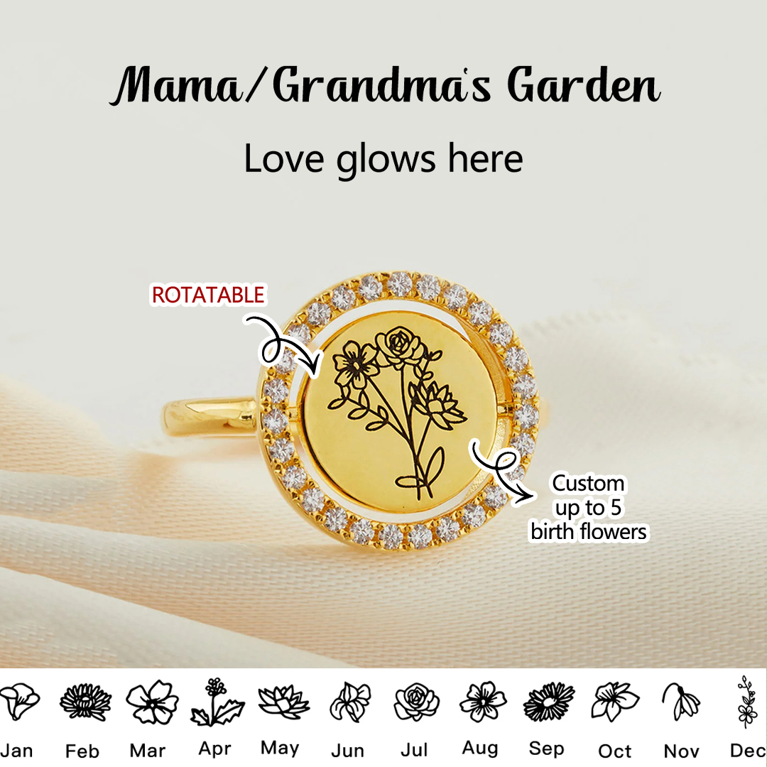 For Mama/Nana - Rotatable round birth flower custom diamond Ring