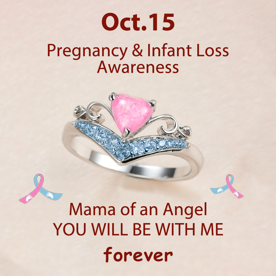 For Memorial - S925 Mama of an Angel You Will Be With Me Pink Heart Crown Ring