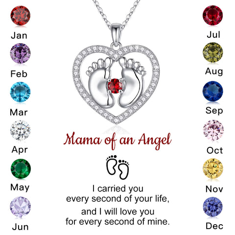 For Memorial- I Will Love You for Every Second of Mine Birthstone Baby Feet Necklace