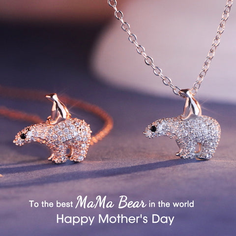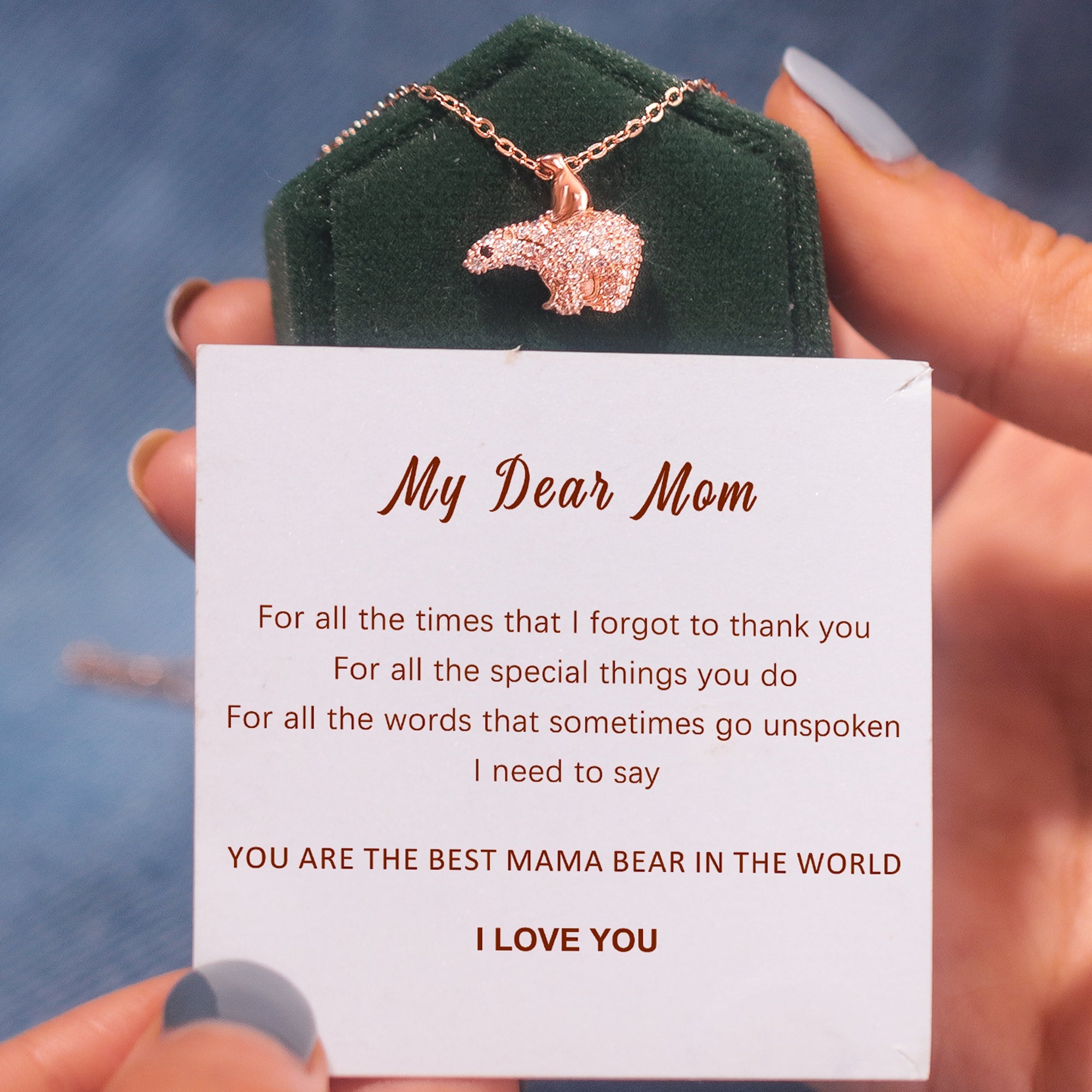 For Mom - S925 You are The Best Mama bear in the World Diamond Bear Necklace