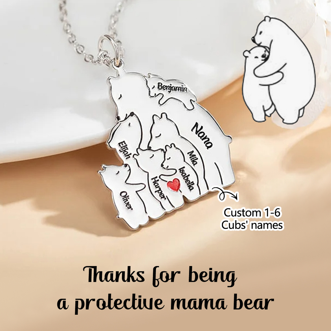 For Mother - Protective Mama Bear Custom Name Necklace