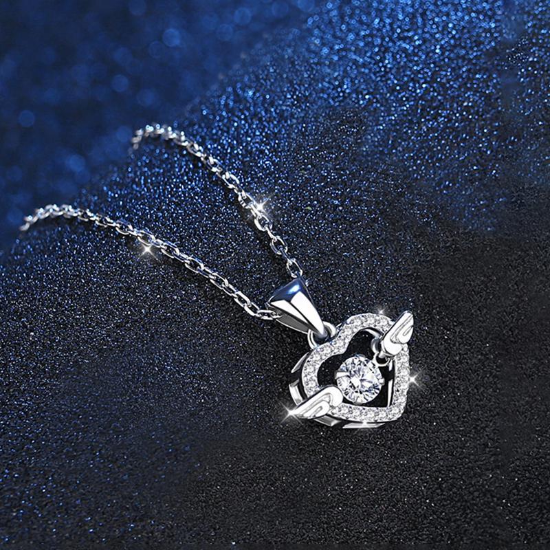 For Sister - Diamond Heart Wings Necklace