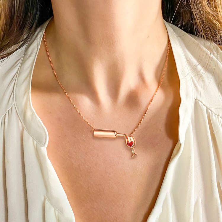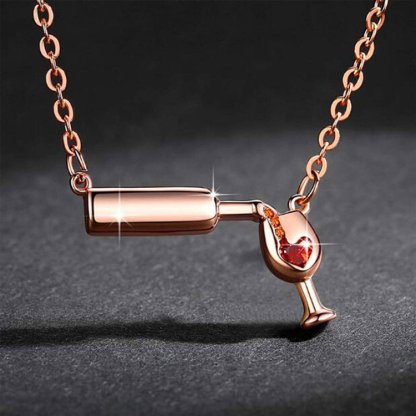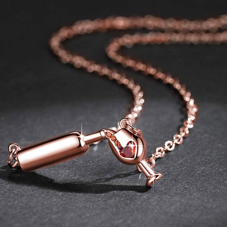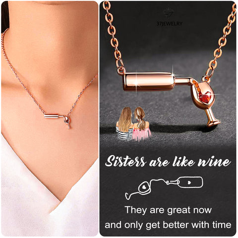For Sister - S925 Sisters are Like Wine Wine Bottle Cup Pendant Necklace
