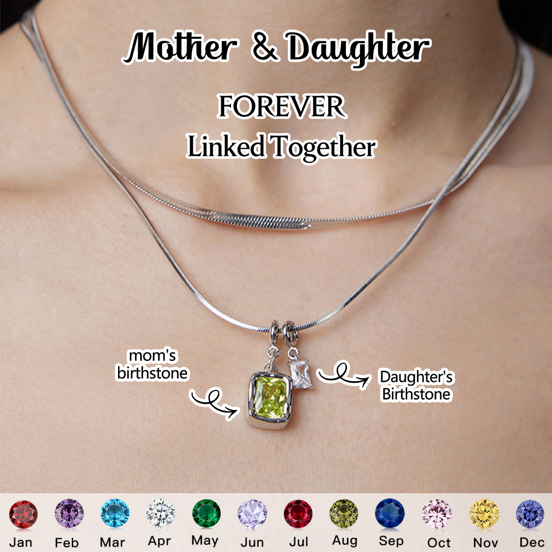 Mother And Daughter Forever Linked Together Custom Birthstones Layer Necklace