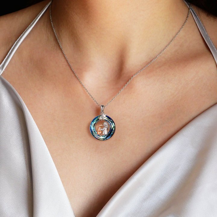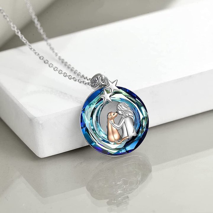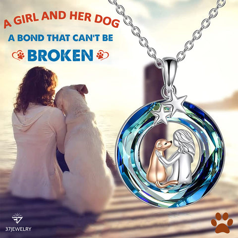 S925 A Girl and Her Dog A Bond that Can't be Broken Circle Crystal Necklace