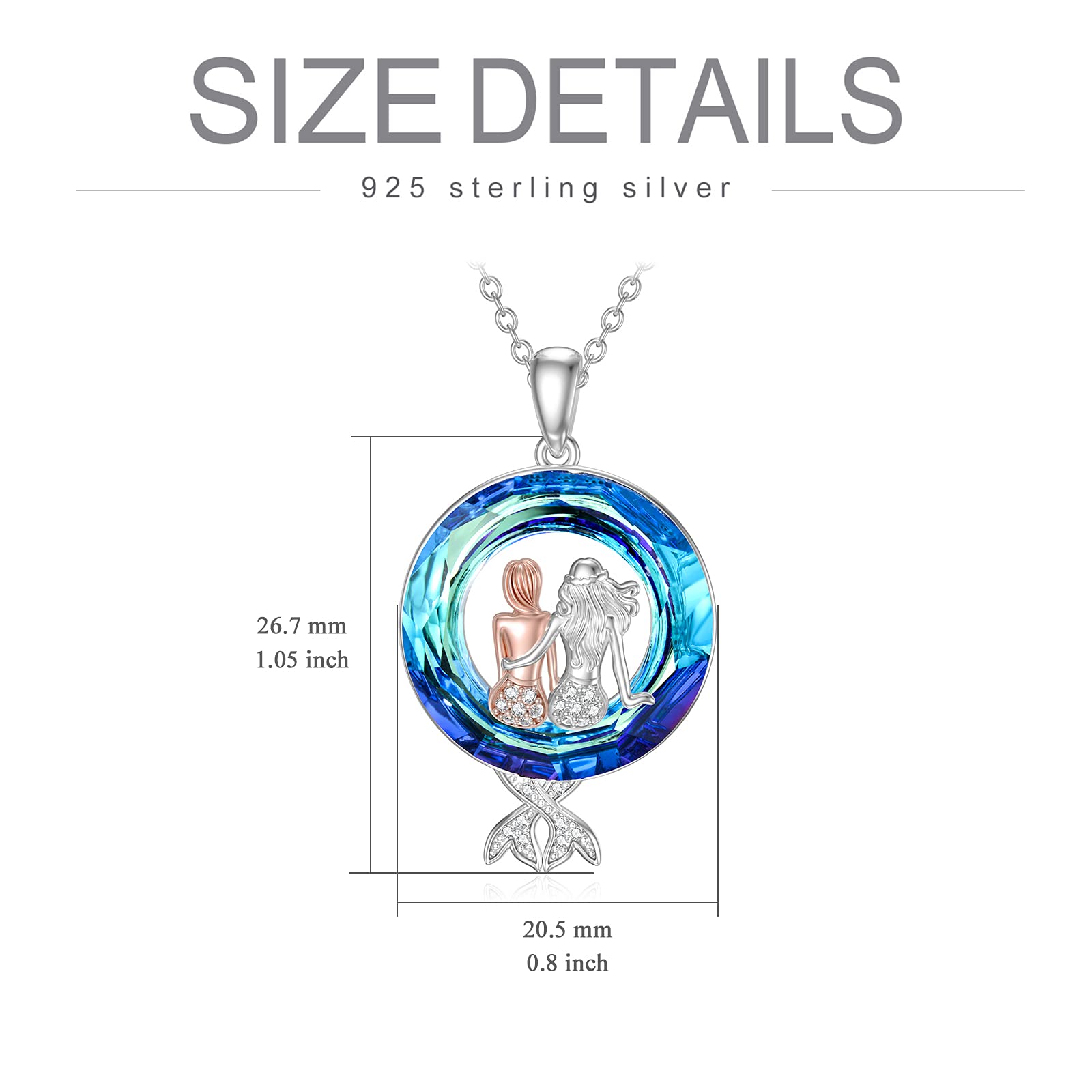 S925 Mermaid Sister Crystal Circle Necklace