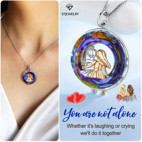 S925 - You are Not Alone Whether It is Laughing or Crying Circle Crystal Sister Necklace